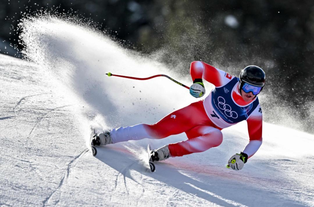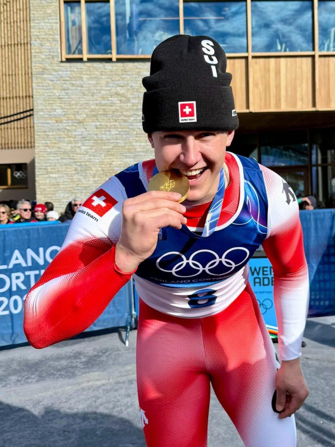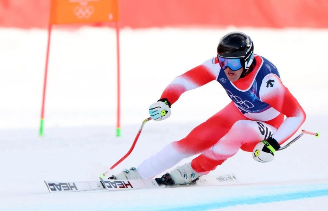 24岁的瑞士新秀弗兰约・冯・阿尔门(Franjo von Allmen),他首次亮相冬奥就连夺三枚金牌,成为米兰冬奥会的“三冠王”,也身着迪桑特。